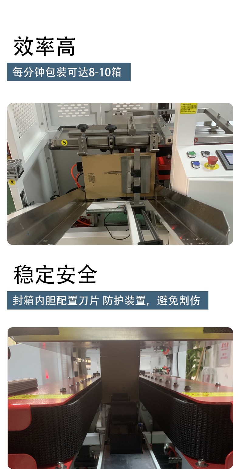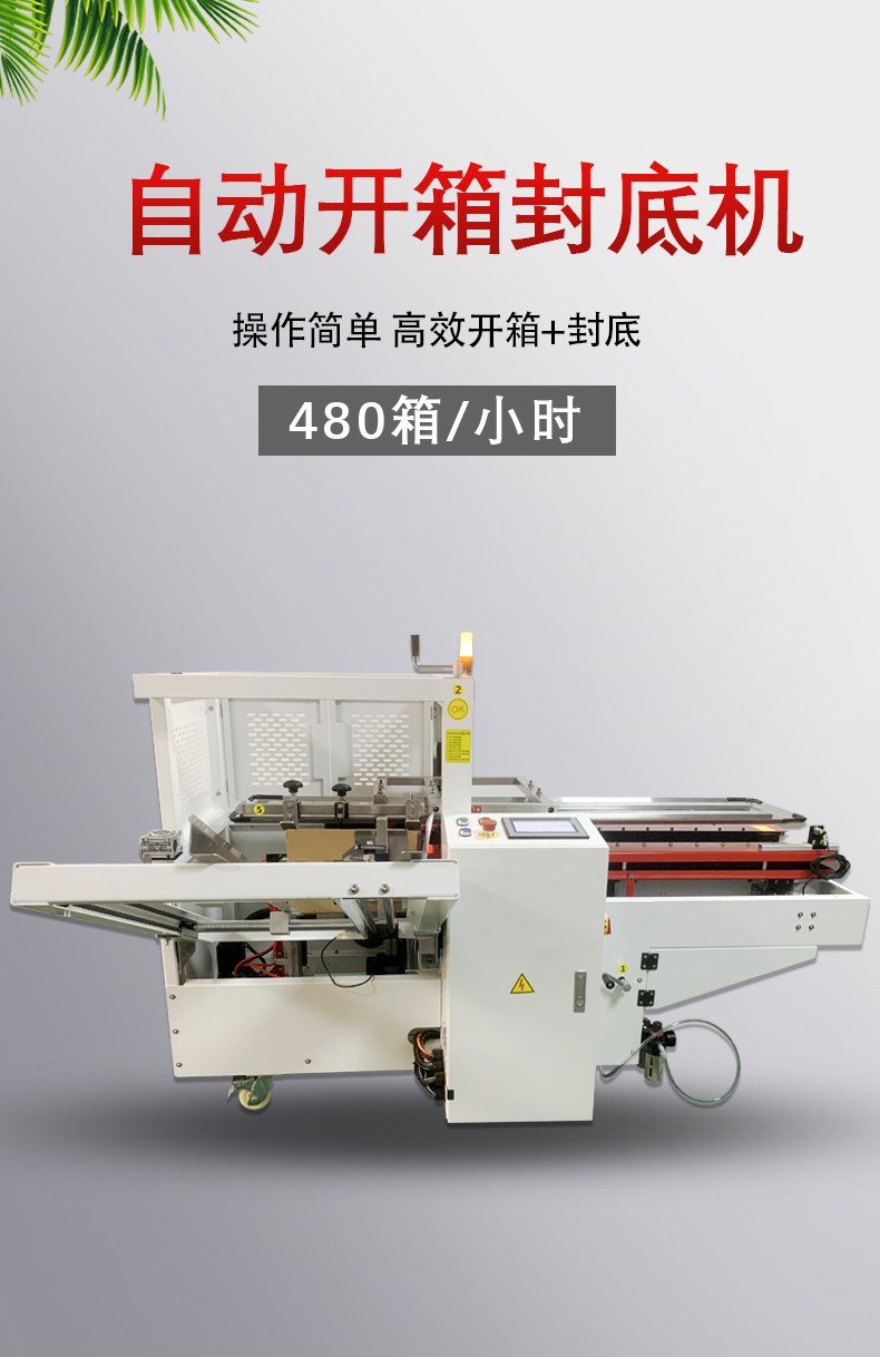 自動(dòng)開(kāi)箱封底機(jī)作為自動(dòng)化包裝設(shè)備的核心組成部分,其優(yōu)勢(shì)主要圍繞生產(chǎn)效率提升、成本控制、包裝質(zhì)量穩(wěn)定、操作便捷性及場(chǎng)景適應(yīng)性展開(kāi),具體可拆解為以下六大核心優(yōu)勢(shì):