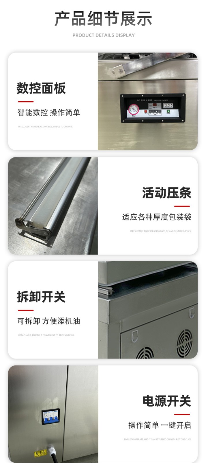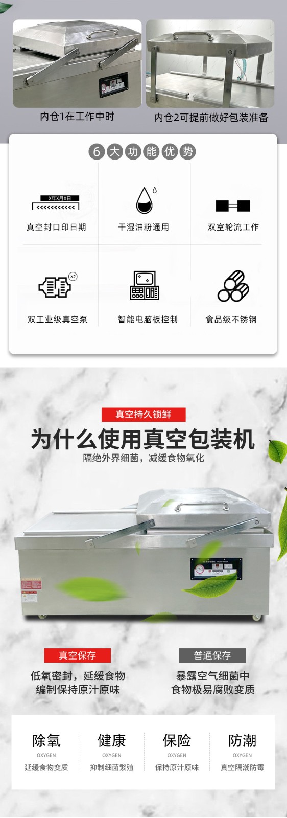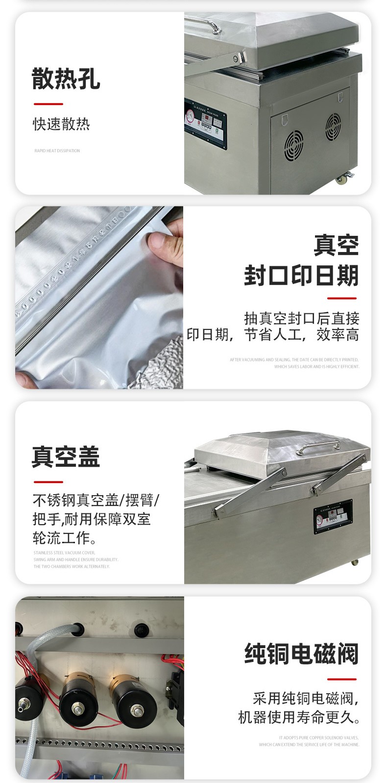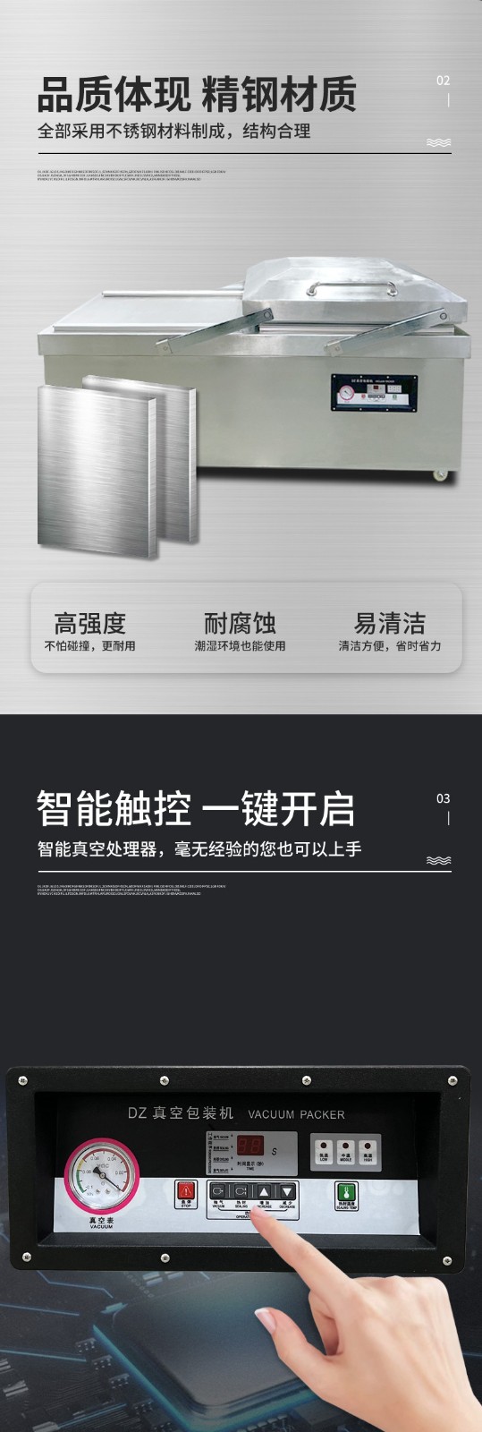 - 人工操作熟練度:操作人員放置產品、撫平袋口、取出成品的速度,直接影響兩個真空室的交替銜接效率。新手操作可能導致 “空等” 時間增加。